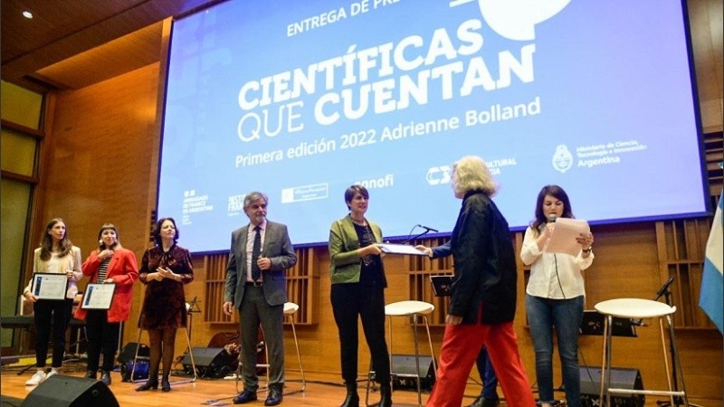 La distinción «Científicas que cuentan» lleva el nombre de Adrienne Bolland. «Se trató de una mujer francesa aviadora, la primera en cruzar pilotando los Andes hace ya más de un siglo», recordó la embajadora de Francia en Argentina, Claudia Scherer-Effosse.