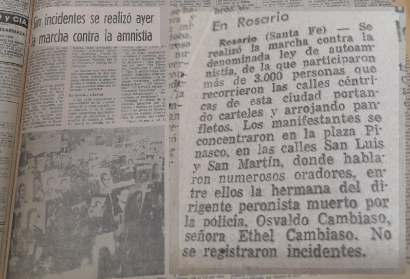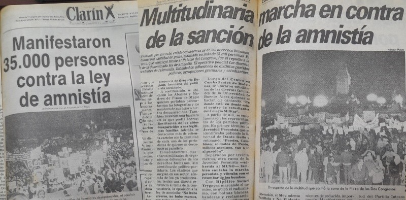 La certeza de una inminente ley generó “un movimiento muy intenso, pronunciamientos de organismos de derechos humanos, de entidades políticas, marchas, concentraciones, que justamente rechazaban la denominada ley de pacificación y, además, reclamaban saber qué era lo que había sucedido con las personas desaparecidas”, aclaró la autora del libro "Historia de la última dictadura militar".