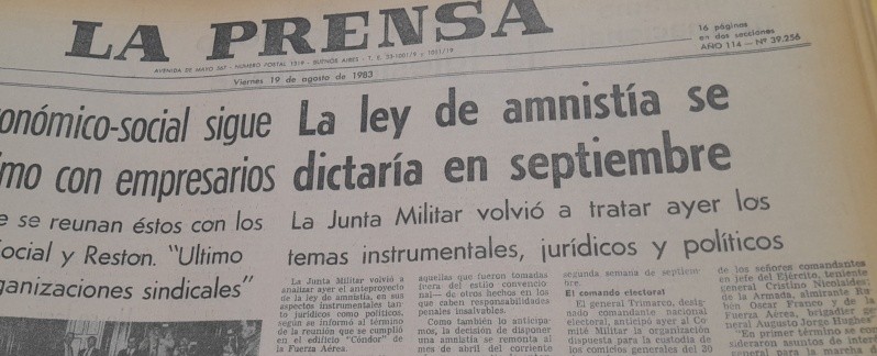 Junto con la publicación del Documento final, la dictadura inslató la idea de una amnistía antes de las elecciones de octubre. En agosto, semanas previas a la sanción de la ley o decreto, el gobierno de facto debatía los términos de esa normativa puertas adentro y los medios reflejaban esa atmósfera.