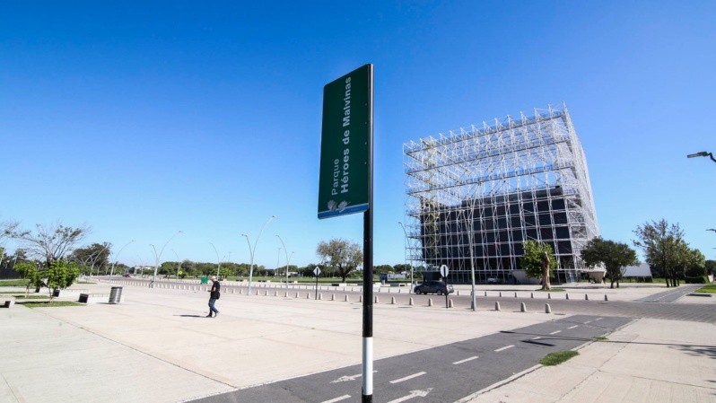 Más al sur, en Ayacucho al 4700, el Parque Héroes de Malvinas es un oasis para quienes hacen ejercicio. Mujeres cortan el pasto con pala para que no invada la bicisensa. Salvo por un cartel, no hay mayores referencias a la guerra en ese espacio frente al imponente Museo del Deporte Santafesino.