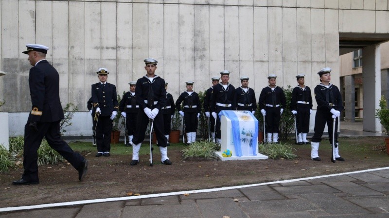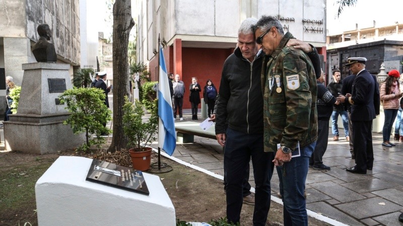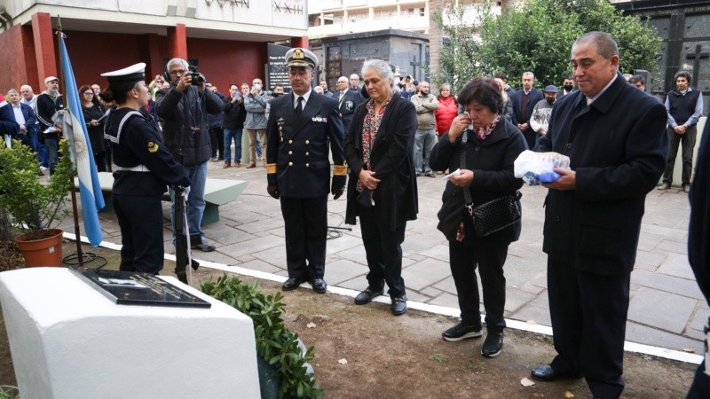 Adentro, al fondo de una calle interna del cementerio, en el Paseo de los Ilustres, está todo listo para ellos. La guardia de honor que trajo el patrullero ARA King el sábado pasado está posicionada (gracias un capitán rosarino que se enteró de la historia). Doce uniformados de la Armada con sus armas y un trompa para el minuto de silencio. Encabezan desde el intendente Pablo Javkin al viceministro de Defensa nacional, Sergio Rossi. Y entre los muchos veteranos de guerra presentes hay uno que tiene una foto muy especial.
