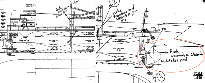 Mientras la furia toma el mando del RM Power, bien abajo, a 18 metros de profundidad en la panza del cetáceo de acero, en el Bow Thruster, el hueco donde funciona la hélice que se usa para virar el barco, y al que se llega después de bajar escaleras y atravesar corredores; ahí, en el interior retorcido de ese cuarto imposible, queda un jirón de los sacrificados. Esas botellas con orina, ese chaleco salvavidas, esos trozos de ropa, los restos de alimentos y esas mierdas con olor a mierda, empiezan a ser, son ya, más importantes que cualquier grito para la historia que sigue.