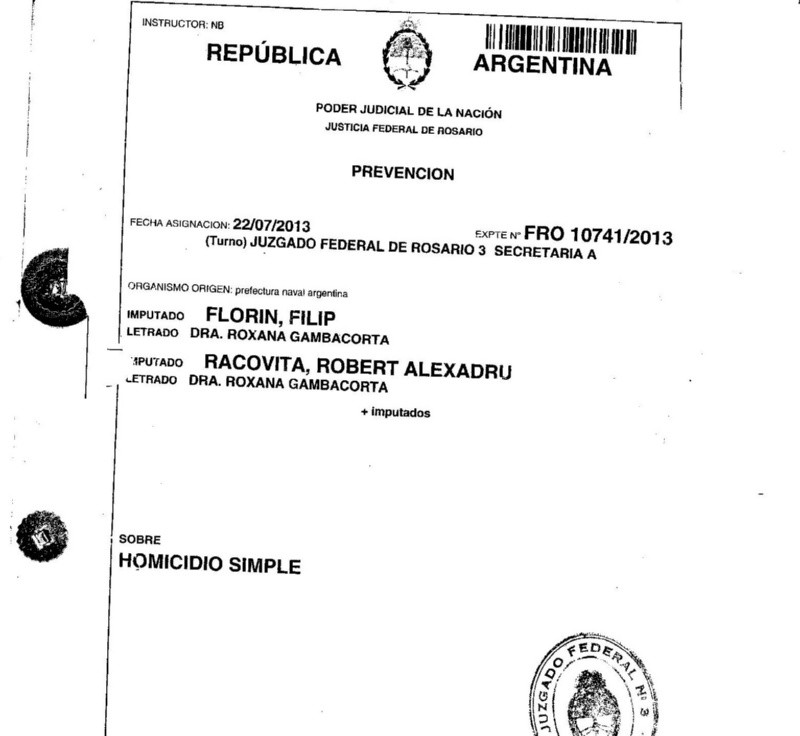 Desde ese país inverosímil llega entonces la notificación del caso del RM Power a la Justicia argentina el 22 de julio de 2013. El juez federal número 3 de Rosario, Carlos Vera Barros, es informado de la denuncia y del nombre del principal acusado: el capitán Florin Filip. Prefectura Naval Argentina se prepara para el arribo de la nave, la escena de un cuádruple homicidio concretado en algún punto del Atlántico.