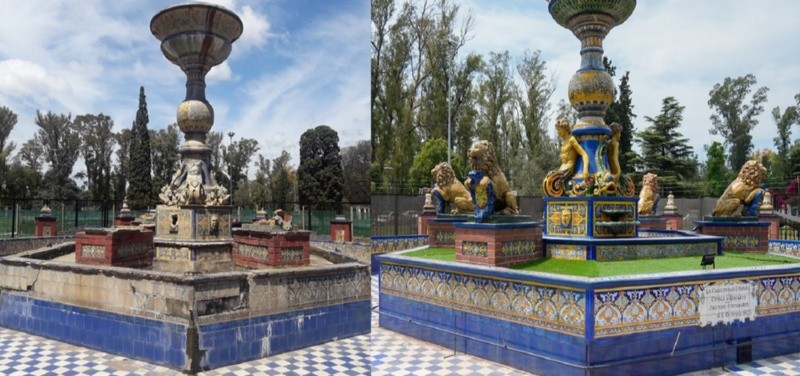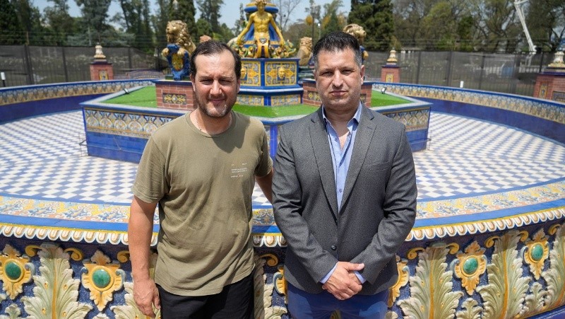 La Fuente de los Españoles es la más grande por fuera de la península ibérica, y su esplendor de antaño se refleja en la retina de quien se acerque. Tiene 18 metros de diámetro y seis de alto. El reconocido ceramista español de Talavera de la Reina, Juan Ruiz de Luna la diseñó a pedido de la comunidad española, como un presente a la ciudad en su bicentenario, en 1925. “Ruiz de Luna fue quien estuvo a cargo de esta obra desarrollada por los árabes en la península ibérica, con influencia italiana en el segundo Renacimiento español”, señaló Berton, quien a lo largo de estos diez meses fue director técnico de la albañilería y la restauración.