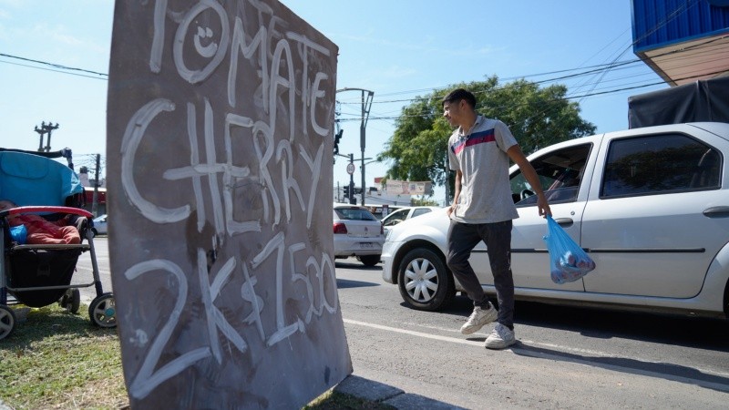 Bauti, de 3 años, se enreda en una silla tipo reposera. Su mamá los cuida a los dos mientras su papá va y viene con las bolsas de tomate perita y cherry. Le pegan un grito. El semáforo está en verde y un hombre en un utilitario se arriesga al no acelerar y quedar clavado en medio de la traza.
