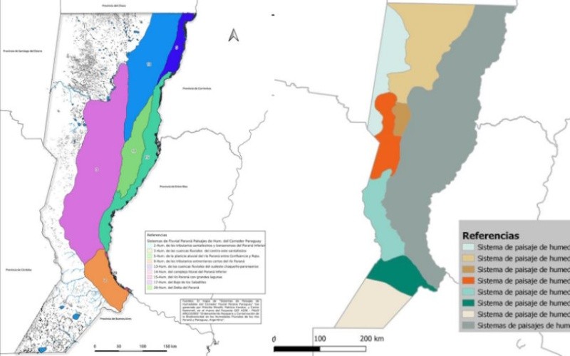 Al abrir esos 16 sistemas dentro de las tres grandes regiones, aparecen las Unidades de Paisaje de Humedal (UPH). Dentro de la llanura de inundación del Paraná, por ejemplo, no es lo mismo el cauce principal del río que las zonas de lagunas ("planicie multilagunar") o las más altas donde el agua no llega y crece otro tipo de vegetación ("humedales sobreelevados").