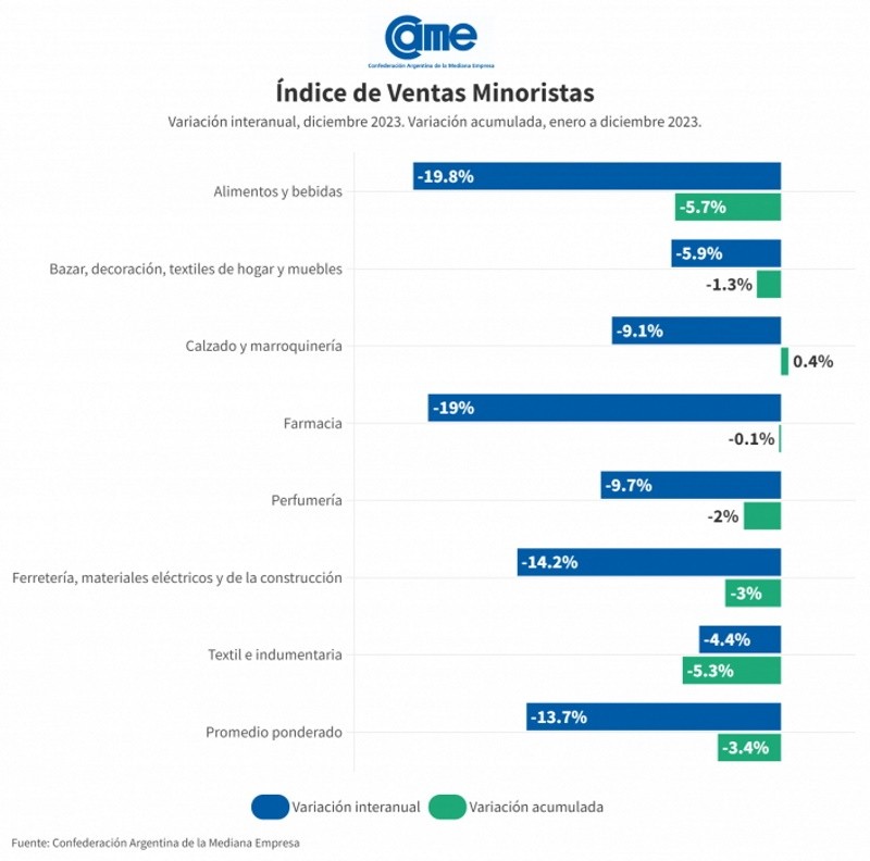 Alimentos y bebidas lideraron la caída de las ventas en 2023