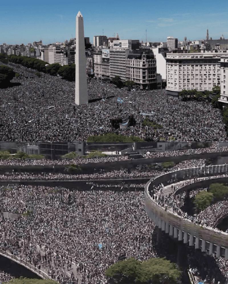 Por largos ratos, ni siquiera los canales de televisión de Buenos Aires que estaban trasmitiendo en vivo sabían con exactitud en qué zona de la ciudad se encontraba el micro descapotable de la selección argentina campeona del mundo.