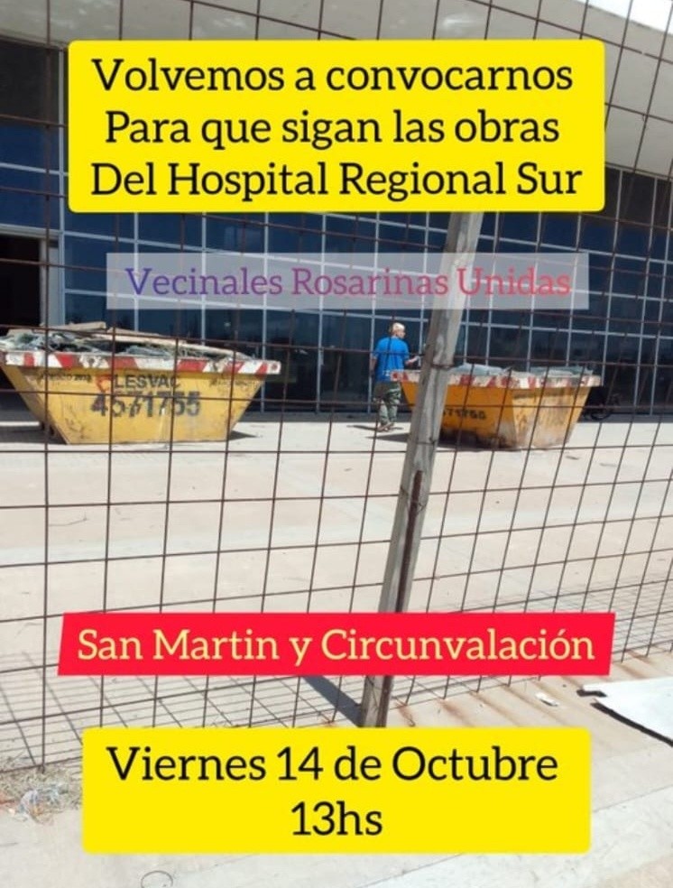 Finalmente anunciaron que protegerán el Hospital Regional Rosario Sur con un cerco perimetral alrededor de la estructura del futuro centro de salud proyectado para cubrir la demanda de atención del sur provincial. La obra costará unos 24 millones de pesos. Pese a la noticia, vecinales se concentraron este viernes y reclamaron: "Nos manifestaremos hasta que se concrete".