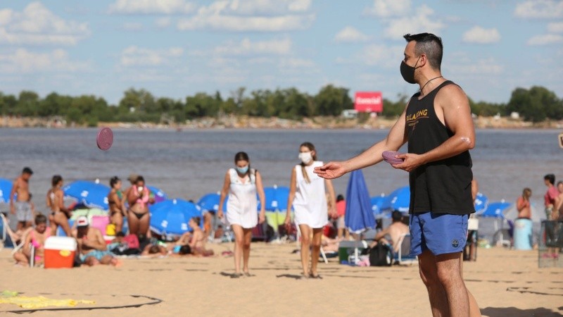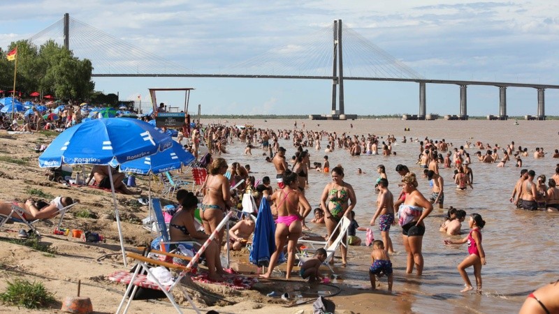 Con el aviso emitido por el Servicio Meteorológico Nacional (SMN) para Rosario y la región, a raíz de las altas temperaturas que se vienen registrando el fin de semana, este domingo la costa norte de la ciudad se vio colmada de personas buscando refrescarse.