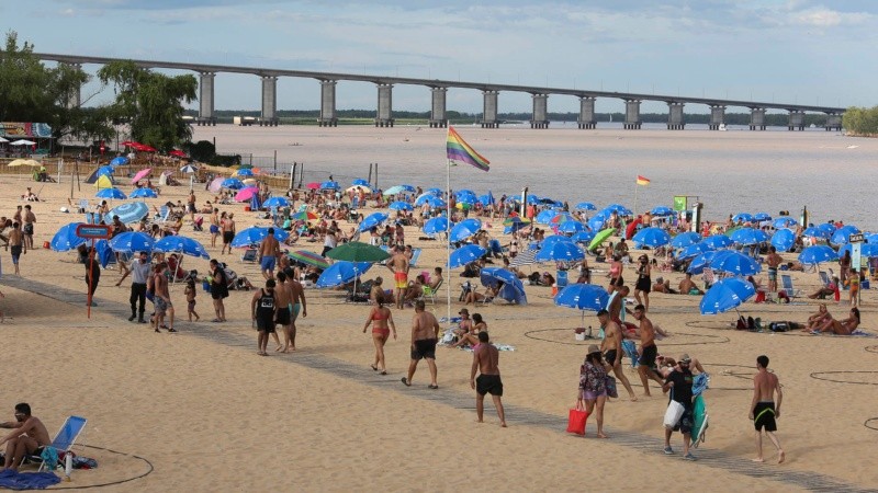 Las postales de este domingo en el balneario la Florida están saturadas de reposeras, sombrillas y heladeras.