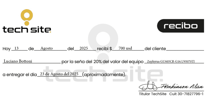 La familia, realizando un gran esfuerzo económico, realizó la compra del equipo adaptado el 13 de agosto a la firma Techsite.ar, transfiriendo 700 dólares como seña, con una promesa de entrega para diez días después. Sin embargo, lo que siguió fue una cadena interminable de excusas y demoras por parte de la empresa.