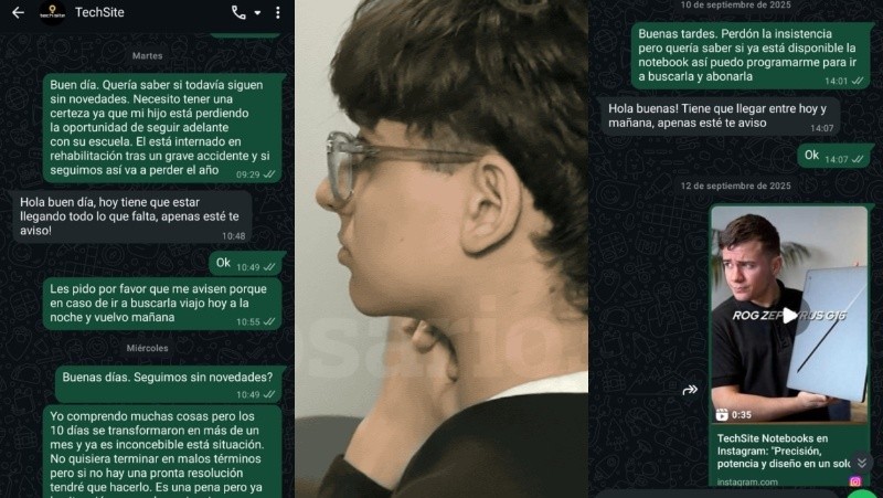Según la denuncia familiar, los mensajes de la compañía con sede en Palermo fueron evasivos e incumplieron múltiples fechas de entrega, a pesar de que la familia insistió y Matías perdía días vitales de cursado.