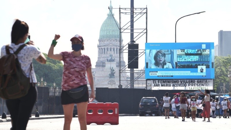 Bajo un sol inabarcable, se congregaron desde temprano las mujeres que defienden el proyecto de interrupción voluntaria del embarazo y el sector opuesto, donde se reúnen las que lo rechazan.