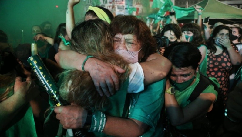 Fue hoy. Es ahora. Este miércoles por la madrugada el Senado convirtió en ley una aspiración de años, y de muchos: la interrupción voluntaria del embarazo. Fue un martes histórico. Mientras el gobierno empezaba a vacunar contra el coronavirus, se anotó otro poroto. O se lo restó, según se mire. El lado celeste, del otro lado de la plaza del Congreso, resistió hasta al final, pero los rezos no alcanzaron. No pudieron superar el argumento de la religión y pareció que les hablaron únicamente a (ciertos) cristianos y/o católicos.