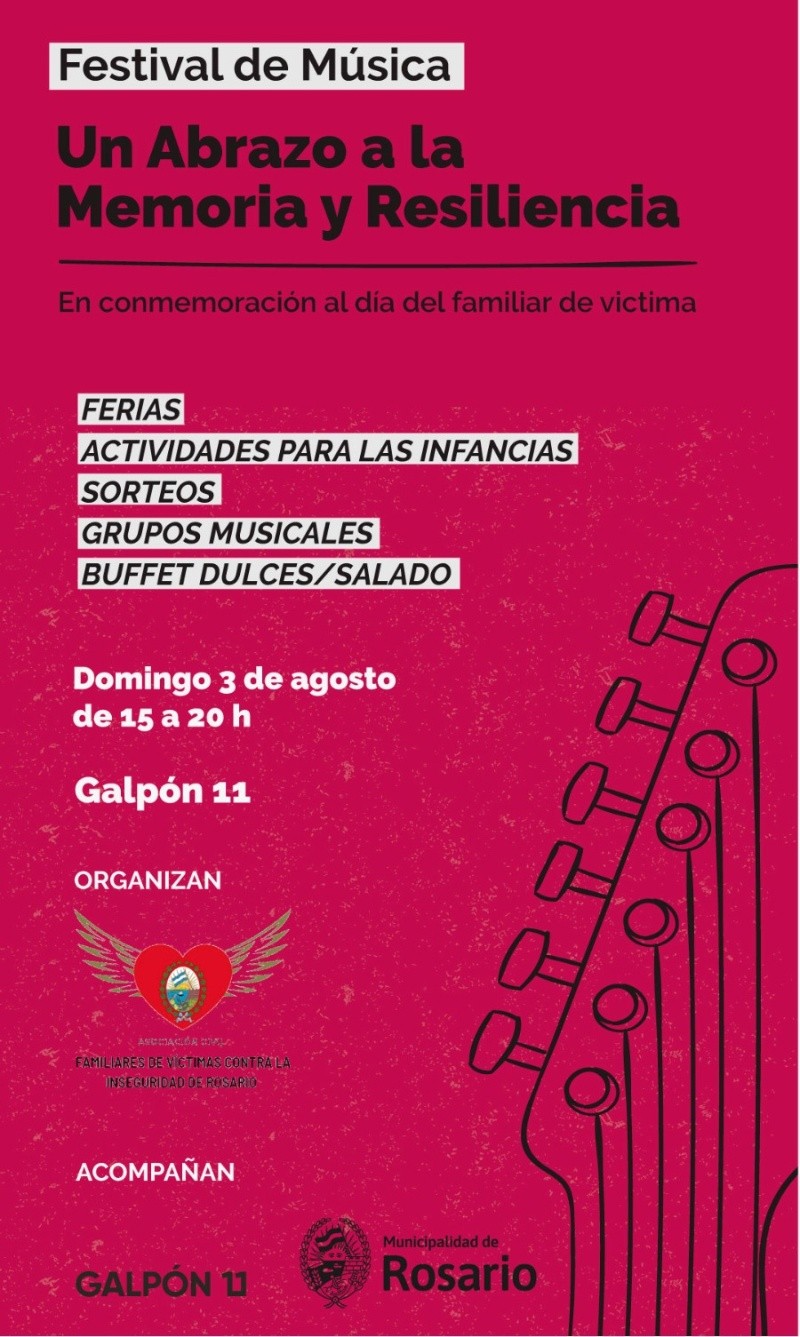 "Este festival es una forma de transformar el dolor en lucha colectiva, visibilizar las ausencias y celebrar la vida desde la memoria activa. Un homenaje cargado de emoción, arte y compromiso, abierto a toda la comunidad", informaron desde la Asociación Civil Familiares de Víctimas contra la inseguridad de Rosario.