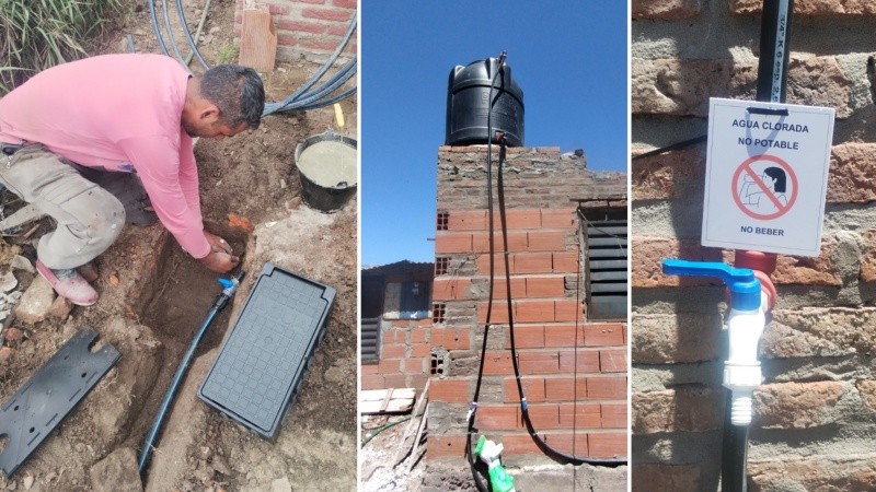 La apuesta fue larga y compleja. En pocas palabras se puede resumir así: reemplazaron los tendidos irregulares hechos con mangueras que se pinchan o que se mezclan con el líquido estancado de las zanjas por un único caño seguro que llega a 46 viviendas. Lo construyeron bajo tierra y con salidas a cada casa durante 2023. No es una cañería oficial de Assa; es una mejora.