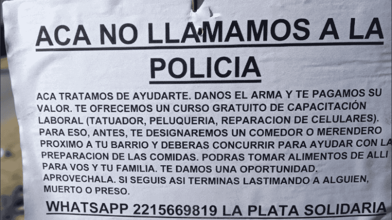 Una particular movida solidaria se viralizó en las redes sociales. Cansados de los hechos de inseguridad, los vecinos de La Plata decidieron colgar carteles en las calles con la consigna "Acá no llamamos a la policía". Si bien el texto pareciera apuntar a otro tipo de acciones, lo que busca es desarmar a los jóvenes y capacitarlos en oficios.
