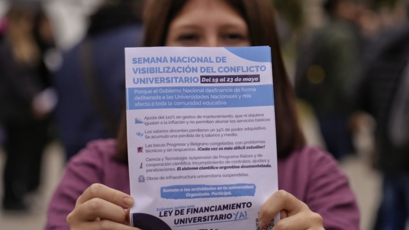 Las universidades públicas de todo el país realizan esta semana jornadas de visibilización de sus reclamos al gobierno nacional. Los gremios de profesores y de trabajadores se suman con medidas de fuerza y los estudiantes desarrollaron este miércoles un acto en plaza San Martín para exigir la sanción de una ley de Financiamiento Universitario.