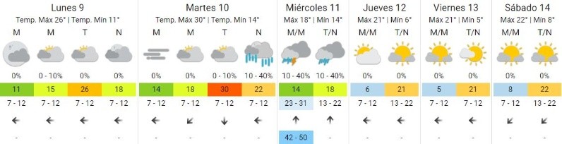 El resto de la semana seguirá con mañanas que estarán entre frescas y frías (mínimas de 5 o 6 grados para jueves y viernes) y tardes templadas, con al menos 20 grados.