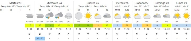 Las condiciones comenzarán a mejorar hacia el anochecer y ya el jueves por la mañana predominará el viento sur y el cielo despejado.