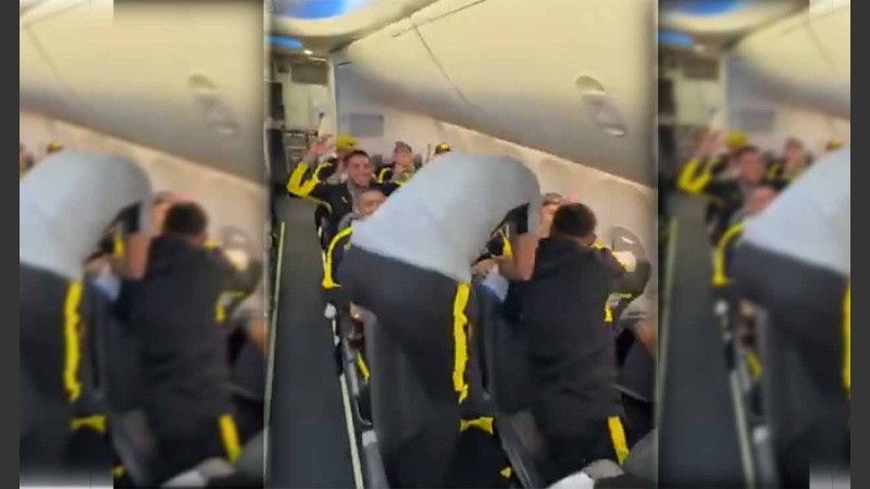 En el viaje rumbo al duelo de esta noche, se generó una inesperada polémica. El plantel aurinegro viajó este lunes en un avión de la empresa Aerolíneas Argentinas. Y en las redes sociales se hizo viral un video en el que se puede ver a los futbolistas y el resto de la delegación cantando. En un momento, uno de los futbolistas se paró en un asiento mientras que un compañero tomaba el respaldo de otro y lo movía.