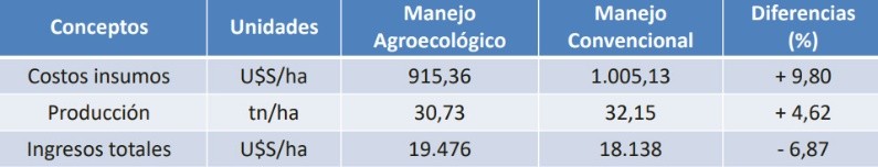 El ingeniero agrónomo pone como ejemplo un campo de papa de 500 hectáreas. Trabajó en un lote puntual de forma agroecológica y añadió una enmienda orgánica. Del lado convencional siguieron con fertilizantes químicos. Los primeros resultados no se expresan en un cambio de matriz del suelo pero sí se pueden medir. Con 10% menos de costos, tuvieron algo menos de producción y el ensayo agroecológico arrojó un 6% más de ingresos.