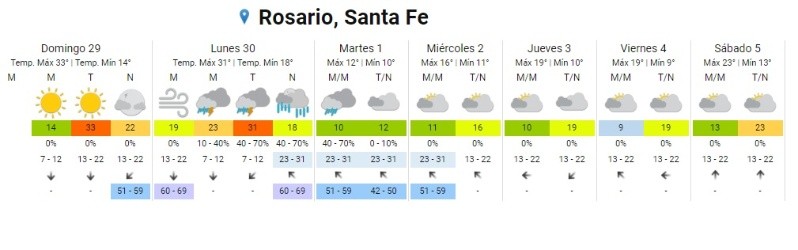 El lunes arrancará ventoso desde la mañana con probabilidad de lluvias y tormentas durante todo el día.