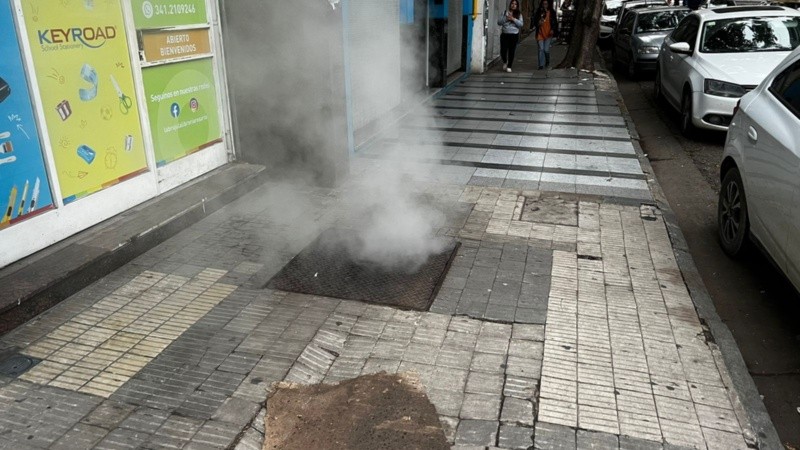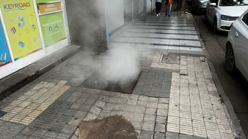 Un denso vapor salía este martes por la mañana desde la vereda de Presidente Roca al 1000, entre San Luis y San Juan. Los vecinos advirtieron que no es nuevo y que ya hicieron la denuncias.
