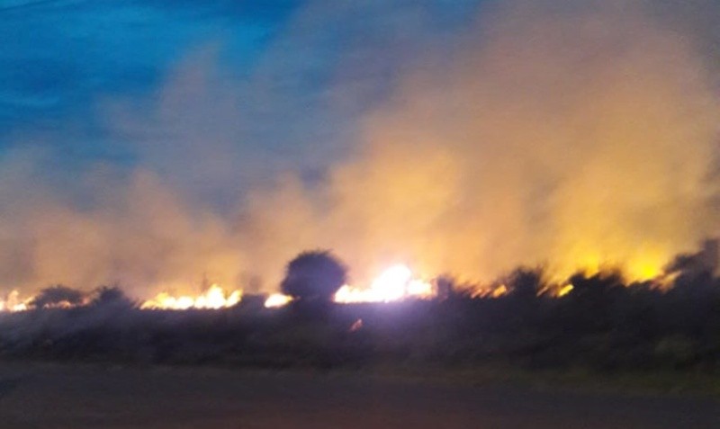 Las llamas avanzaban en una zona de pastizales altos y la preocupación era que el fuego pueda alcanzar viviendas aledañas.
