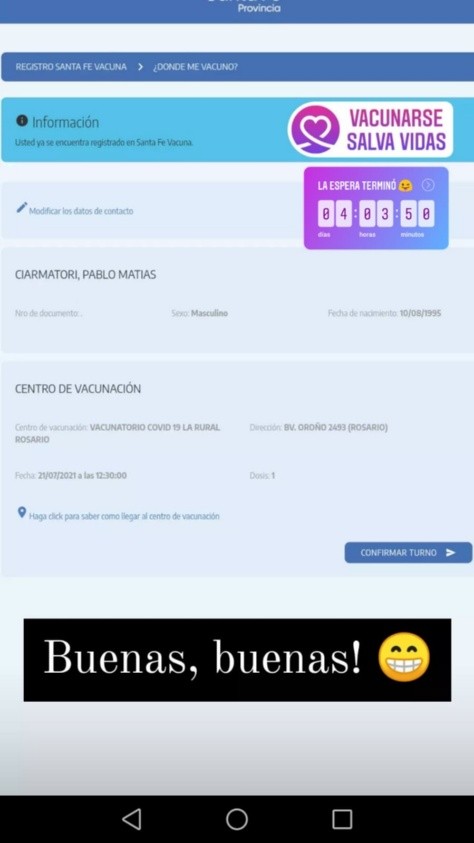 Tanto en Instagram como en Twitter, son muchos los que se pusieron contentos y festejaron haber recibido el turno, luego de haber esperado siete meses desde el inicio de la campaña de vacunación.
