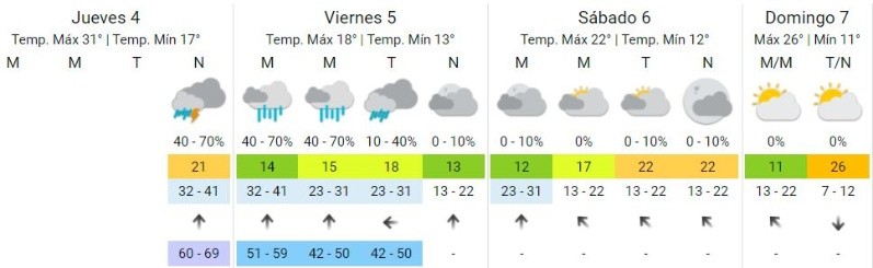 Para Rosario, el SMN anuncia tormentas aisladas desde la noche del jueves o madrugada del viernes, mientras que el último día hábil de la semana transcurriría casi por completo con condiciones lluviosas.