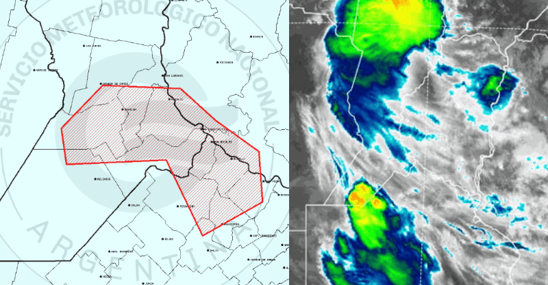Además, Oscar Monjelat del grupo Caza Tormentas del Sur informó sobre "una línea de tormentas avanzando de SUR a NORTE acarrea riesgo de rayos, chaparrones de lluvia y granizo. Ráfagas de viento fuerte".