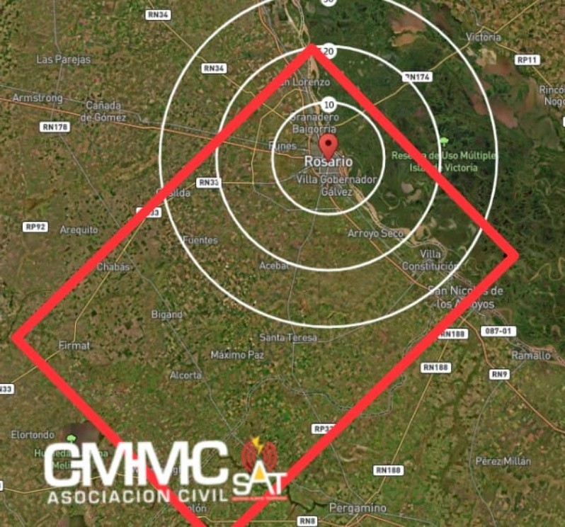 La región afectada incluía a los departamentos Rosario, Caseros y Constitución, en el sur de Santa Fe, según los datos del Sistema de Alerta Temprana (SAT).