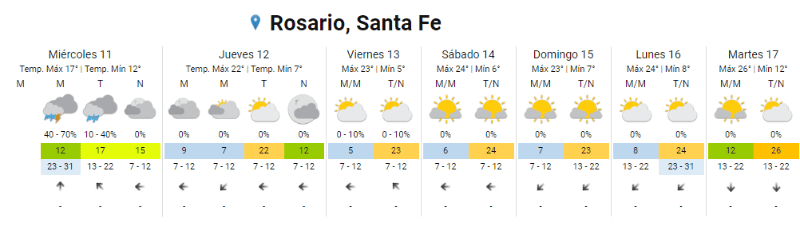 Este miércoles Rosario amaneció con cielo cubierto que anuncia posibles lluvias en las primeras horas de la mañana. La mínima era de 12 grados y se espera que la máxima alcance los 17.