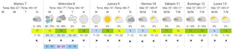 Luego, desde el jueves, el sol volverá a predominar en el cielo de la región con un notable descenso de la temperatura durante todo el fin de semana y principios de la semana próxima.
