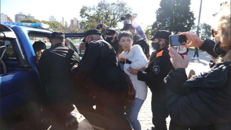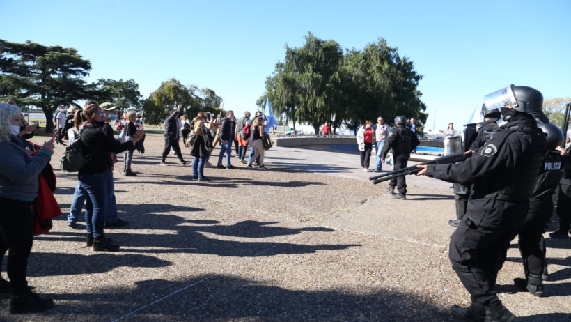 Un amplio despliegue policial se desató sobre la zona del Monumento, con varios patrulleros y la propia jefa de la fuerza provincial, Emilce Chimenti, encabezando el operativo. También estaba presente Prefectura Naval Argentina, que hizo un cordón en la zona y prestó su colaboración.