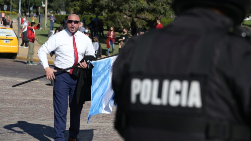 Ordenaron llevar detenidos a quienes se manifiestan en el monumento a la bandera. Tensión pic.twitter.com/jeJAuvvFcY