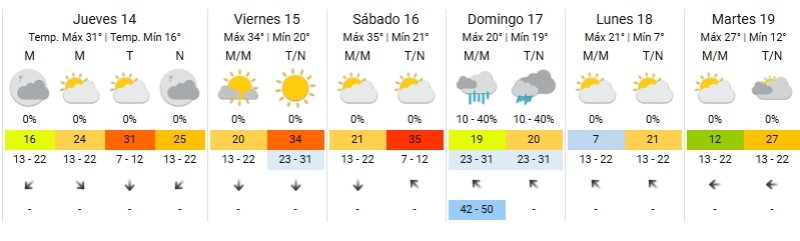 Pero el día más agobiante de la semana será el sábado cuando la jornada comience 21 grados y la máxima se incremente hasta 35.
