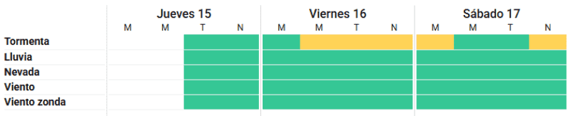 El alerta amarillo tiene vigencias para la mañana, tarde y noche del viernes 16 de mayo y para la madrugada y noche del sábado 17.