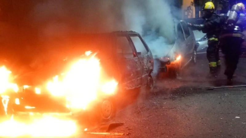 Uno de los hechos ocurrió en la cuadra de 3 de Febrero al 300 alrededor de las cinco de la mañana. Los vecinos escucharon un estruendo y llamaron al 911 al ver que dos vehículos que estaban estacionados estaban envueltos en llamas.