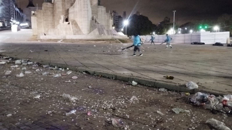 Este lunes por la mañana, mientras todavía quedaban algunos trasnochados festejando el título, el municipio inició el operativo de limpieza. Cuadrillas de higiene trabajaron en el barrido, hidrolavado, recolección de residuos, limpieza y asistencia de cestos y contenedores en la zona del Monumento y el parque a la Bandera.
