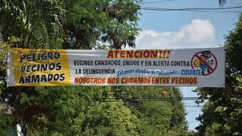 Tras varios hechos de inseguridad, vecinos del barrio Escalante de la ciudad de Santa Fe colgaron pasacalles para anunciar que “están armados” y que cuentan con “tapiales electrificados”.