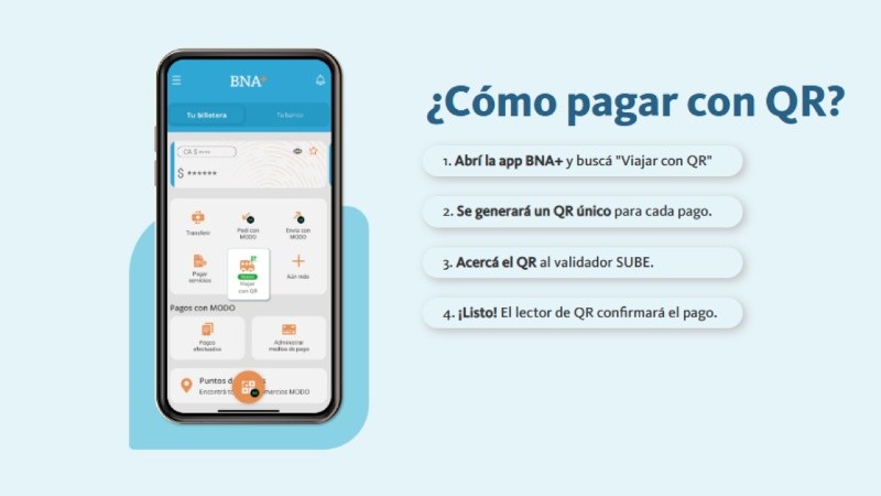 El Banco Nación informó que ya se realizan 100 mil viajes diarios en colectivo pagados con tarjeta o QR a través de «BNA+» en todo el país. Este proceso se va a acelerar dentro de los próximos 90 días, ya que el sistema también se sumará a los trenes.