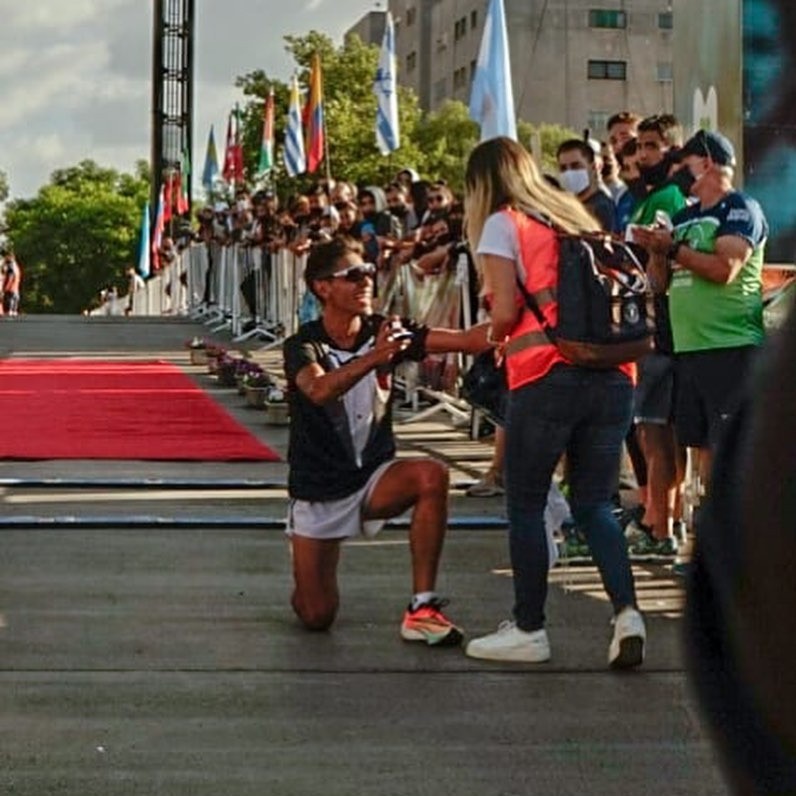 Antonio Poblete corrió la Media Maratón de Mendoza, la más masiva de Sudamérica, donde no solo ganó la carrera sino que registró un récord del circuito y también al cruzar la meta, buscó a su novia y le propuso casamiento.