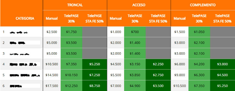 El esquema prevé descuentos para quienes usan TelePase: un 30% para usuarios en general y un 50% para vehículos de gra porte radicados en la provincia de Santa Fe. La medida apunta a estimular el uso del sistema electrónico y agilizar el tránsito en la traza.
