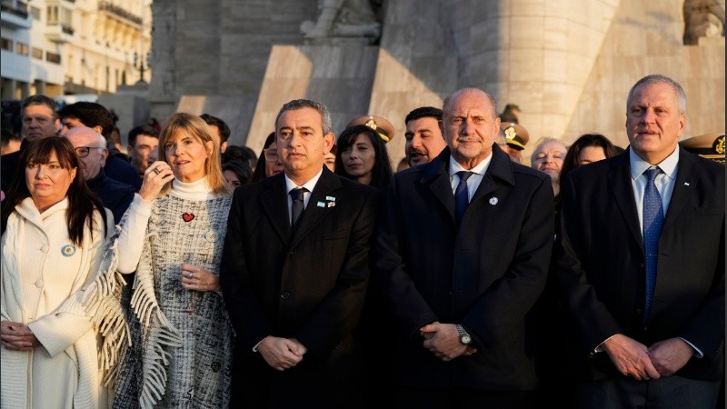 Del acto -que siguió después con la promesa de lealtad a la bandera de los alumnos de cuarto grado de escuelas de la ciudad- participaron también la vicegobernadora Alejandra Rodenas; el ministro de Transporte de la Nación, Diego Giuliano; los ministros provinciales de Educación, Víctor Debloc, de Gestión Pública, Marcos Corach, de Seguridad, Claudio Brilloni, de Gobierno, Justicia y Derechos Humanos, Celia Arena, de Salud, Sonia Martorano, y de Ambiente y Cambio Climático, Erika Gonnet, de Cultura, Jorge Llonch, de Igualdad, Género y Diversidad, Florencia Marinaro; el senador nacional, Marcelo Lewandowski; legisladores nacionales y provinciales; autoridades del Poder Judicial; miembros de las fuerzas de seguridad; la presidenta del Concejo Municipal de Rosario, María Eugenia Schmuck; integrantes de la Mesa Interreligiosa por el Bien Común de la Universidad Nacional de Rosario; miembros del Instituto Belgraniano y del Centro de Estudios Belgranianos Rosario Siglo XXI; y exsoldados combatientes de Malvinas; entre otros.