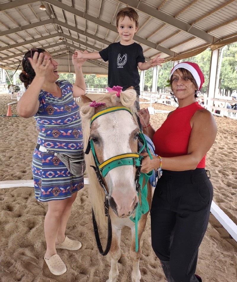 Cuando llegaron, el hijo de Silvia debía caminar con asistencia de ambos brazos: "Mi hijo hizo equitación adaptada. Comenzó cabestreando con dos asistentes, uno a cada lado. Y hoy maneja solo el caballo".