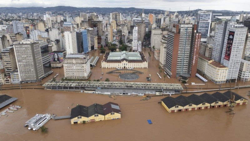 El nivel del río Guaíba, cuyas aguas inundaron el centro histórico de Porto Alegre, la capital regional y donde viven 1,3 millones de habitantes, se estabilizó por encima de los cinco metros, su mayor marca histórica.