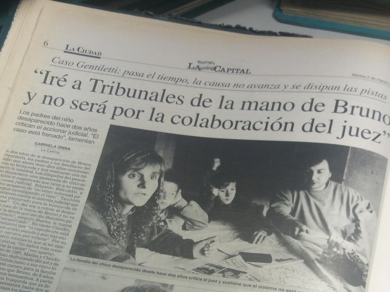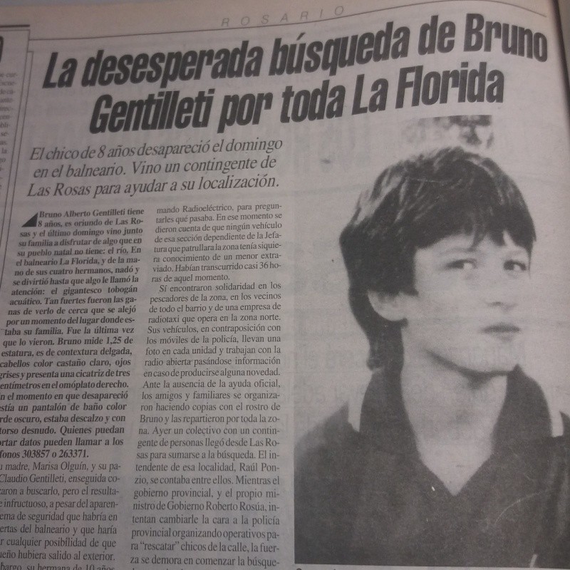 En esa primera semana de marzo en la que desapareció Bruno Gentiletti, al igual que ahora, en la provincia no empezaban las clases. Corría el fin de la década menemista y en Rosario, aún funcionaban los cines del centro que unos años después serían templos religiosos. No había celulares y los teléfonos fijos aún no tenían el 4 adelante del número. Los teléfonos de los familiares de Bruno salían en todos los diarios y en esas primeras semanas hubo cientos de llamadas de personas que decían haberlo visto en algún lugar. De repente Bruno estaba en todos lados. Pero muchas de esas comunicaciones eran de videntes o adivinos que en realidad, no aportaron datos significativos.